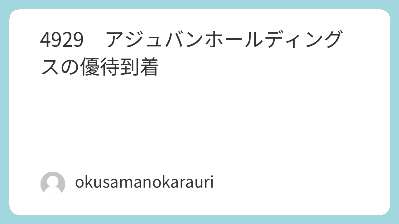 基本的にはデイトレの反省ですが、ちょうど優待がきたので優待の紹介から。