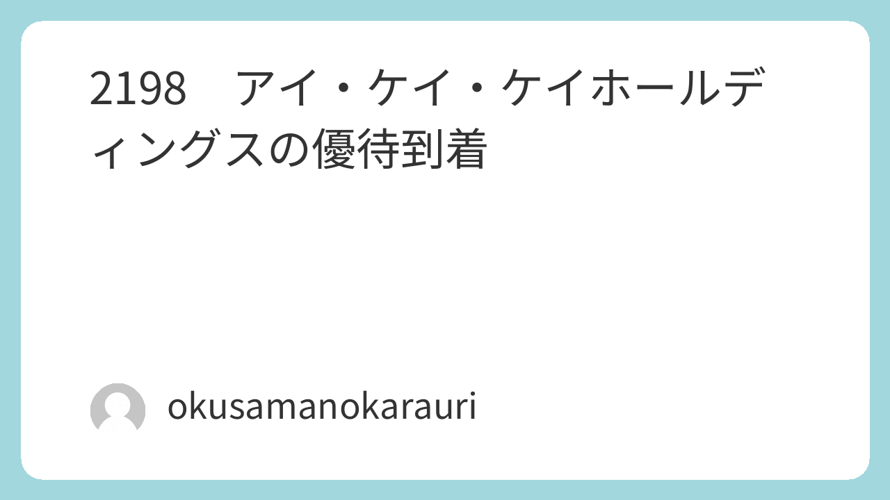 今回はアイ・ケイ・ケイホールディングス(2198)