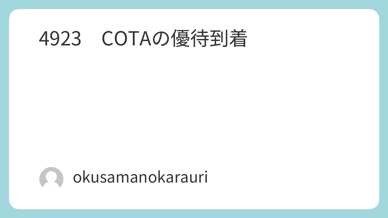 COTAは数字にきびしいイメージあるので、株価も意識して対策たててくれるとは思います。
