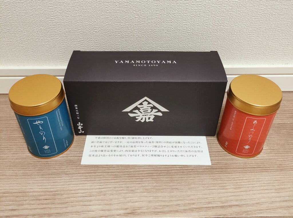 海苔はおいしく、配当も多く、10万以下で買えるのでけっこうオススメ。