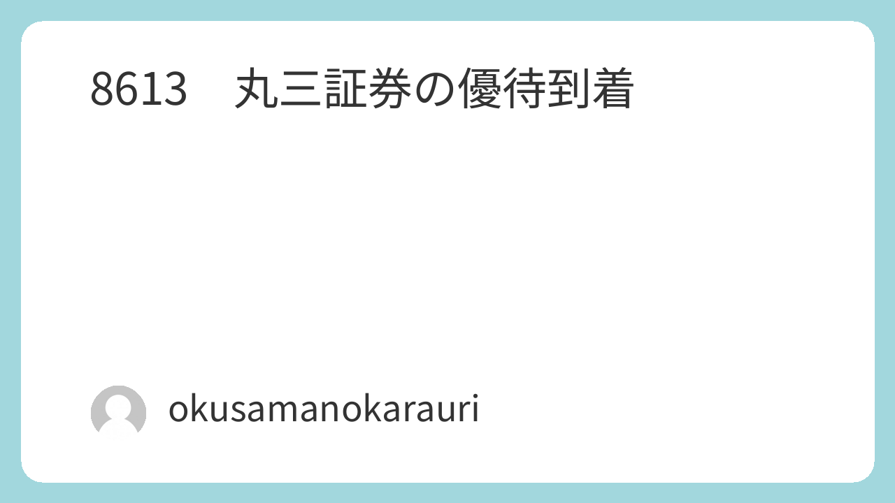 今回は丸三証券(8613)